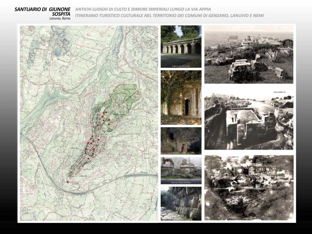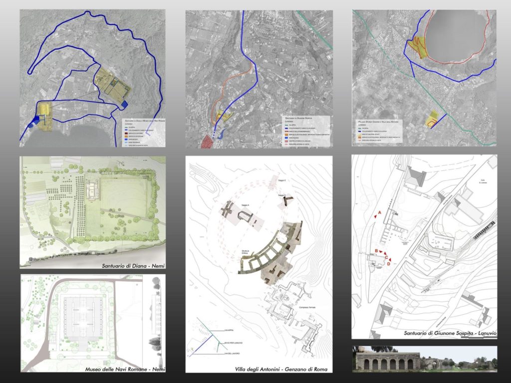 Il progetto intende mettere in rete i principali siti archeologici del territorio dei comuni di Genzano, Lanuvio e Nemi caratterizzati da una forte rappresentatività nel territorio, da un’elevata importanza storico-culturale e dal rappresentare dei potenti attrattori per un turismo di qualità in un territorio noto per l’eccellenza paesaggistica e agroalimentare. Antichi luoghi di culto, come il santuario di Diana a Nemi e quello di Giunone Sospita a Lanuvio, vengono così collegati con le testimonianze di fastose dimore imperiali suburbane come quella degli Antonini o quella dell’imperatore Caligola, i cui ritrovamenti sono nel Museo delle Navi romane (navi di Caligola, appunto) punto di partenza comune degli itinerari, dove convergono i materiali dei siti archeologici del territorio.