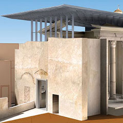 - ridefinizione di uno spazio chiuso destinato al culto attraverso la realizzazione di una facciata-diaframma in corrispondenza del muro della cella del Tempio