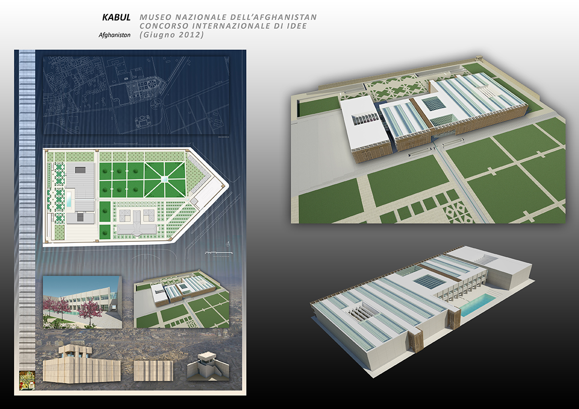 Realizzazione di un nuovo edificio destinato ad ospitare la collezione di circa 100.000 reperti provenienti da tutto il territorio dell’Afghanistan articolato in spazi espositivi, depositi e servizi e la sistemazione a giardino attrezzato dell’intera area comprendente anche la vecchia sede adattata ad uso amministrativo. (Giugno 2012)