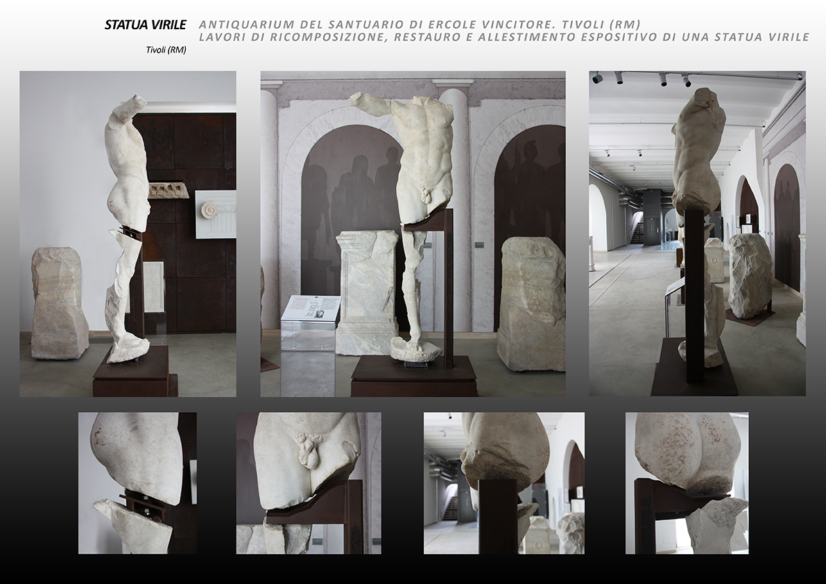 Sono stati ricomposti i frammenti di una statua virile rinvenuti in passato della zona del portico del santuario di Ercole Vincitore. Alla parte più conservata, il torso, si è potuto associare la gamba destra grazie allo studio e alla ricomposizione dei molti frammenti.